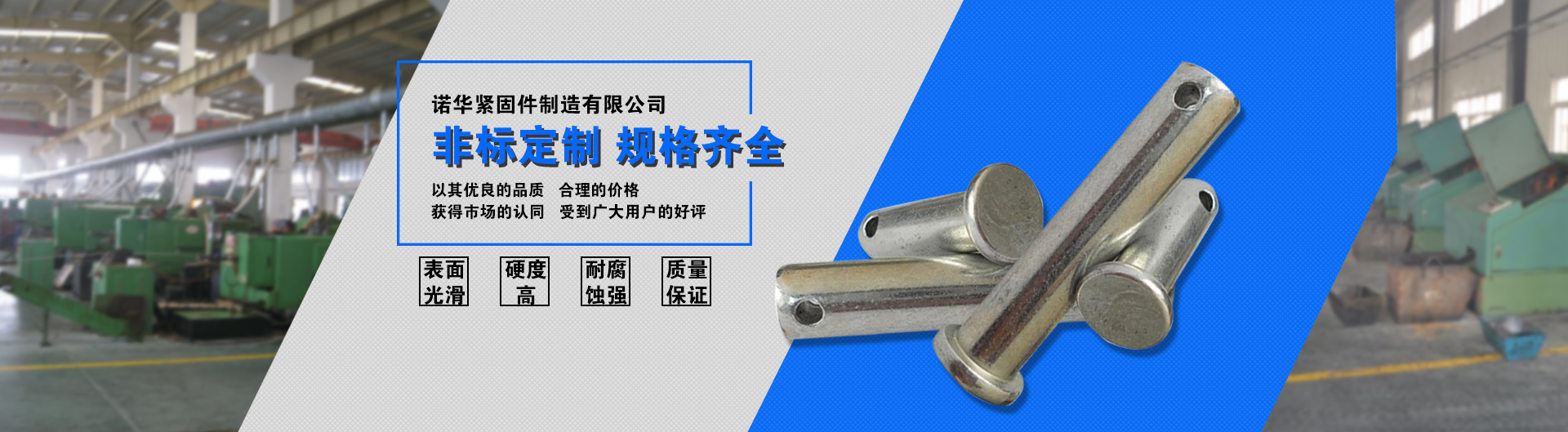 邯鄲市諾華緊固件制造有限公司是座落于中國標準件制造銷售的集散地——永年。地處燕趙大地,濱臨京廣鐵路、京珠高速,107國道,地理位置優越,交通便利。我公司主要生產銷售:銷軸、地腳螺栓、熱鍍鋅螺栓、滲鋅螺栓、鉚釘等產品。公司技術力量雄厚,生產設備先進,工藝精湛,檢測手段完善,實行現代化管理,先進的技術有了科學的經營體制承載,使得企業生產力迅速發展。自投放市場以來,以其優良的品質,合理的價格,獲得市場的認同...
